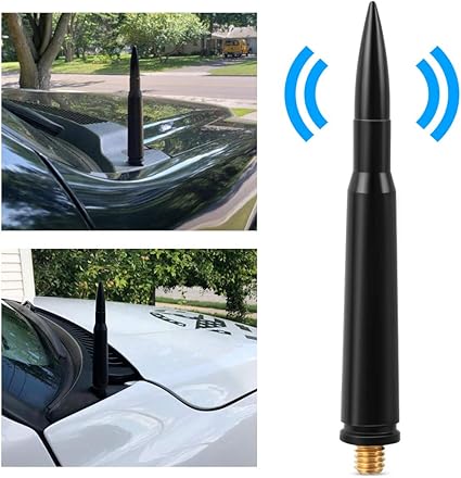 Amazon.com: Mega Racer 50 Cal Bullet Antenna - 5.5 Inch AM/FM Compatible, Universal Fit for Trucks and Cars, Solid Aluminum with Anti-Theft Design and Car Wash Safe - Black: Home Audio &