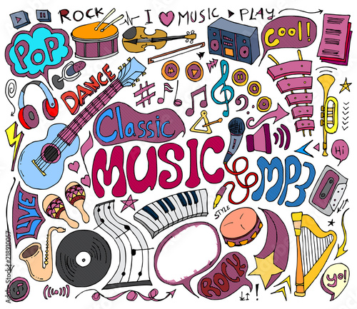 Set Of Music Doodle Vector Creative Colour Art Hand Draw Illustration On White Eps10 Stock Vector Adobe Stock